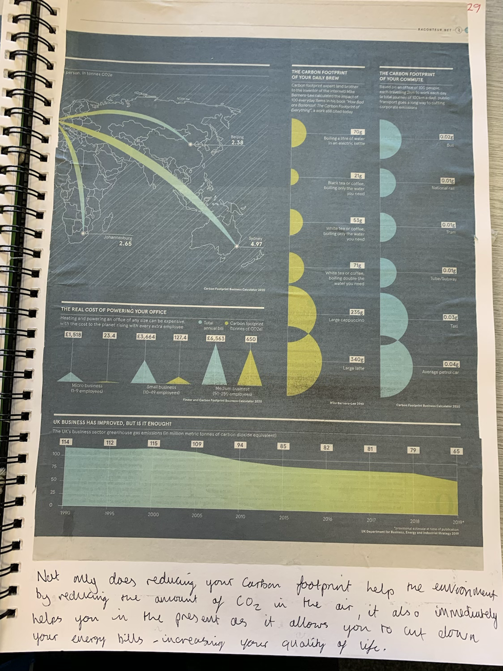 Here I have first done some reasearch on coral reefs and carbon footprints from articles that I found in newspapers. I also then followed that with research about co2 emissions from cars and how they have changed and been reduced over time.